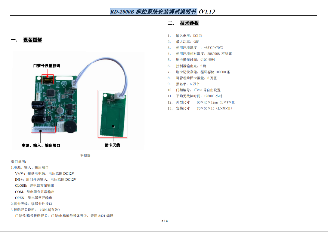 RD-2000A 梯控系統安裝調試說明書(V1.1)